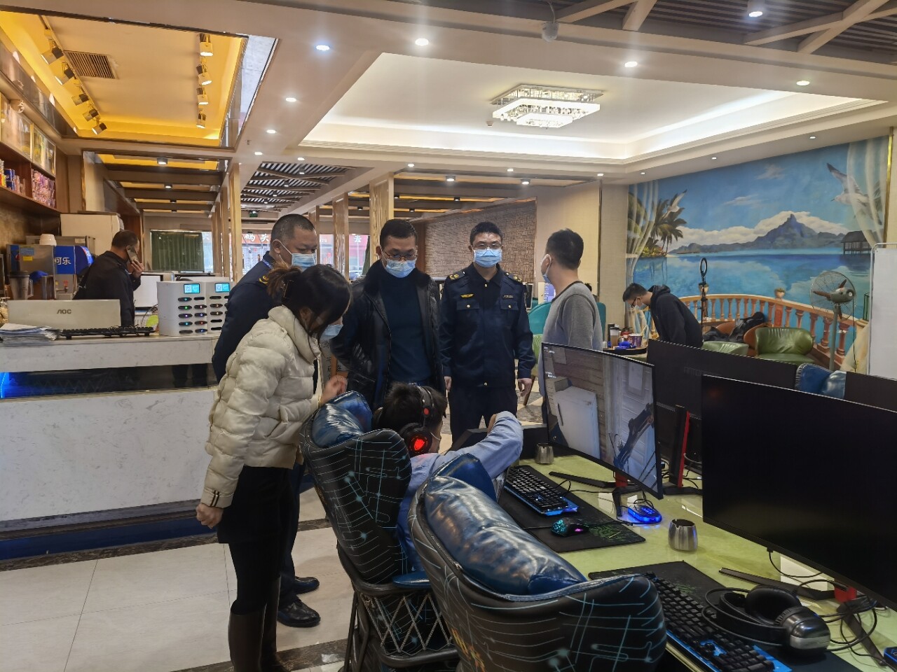 2月9日,市场管理股工作人员前往泰美镇,分别对2家网吧进行文化市场安全生产工作检查。