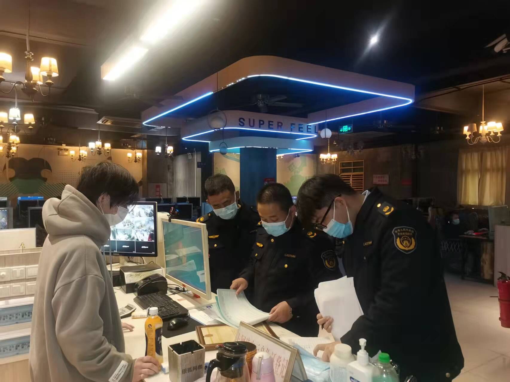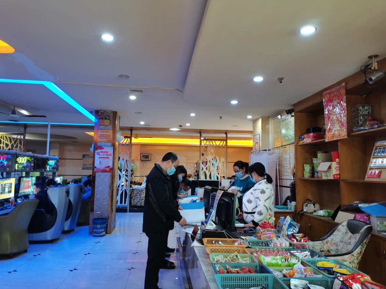 2月9日,局党组成员郑浩带队,疫情防控第四检查组工作人员到石湾镇检查疫情防控和安全消防工作,共检查了非凡网吧、豪杰电竞有限公司、奥斯卡KTV等4间网吧、3家KTV。检查中发现部分网吧存在上网人员未佩戴口罩、灭火器已过期、安全消防工作架构图、应急预案需进一步完善等问题,工作人员已督促经营单位按照要求整改。