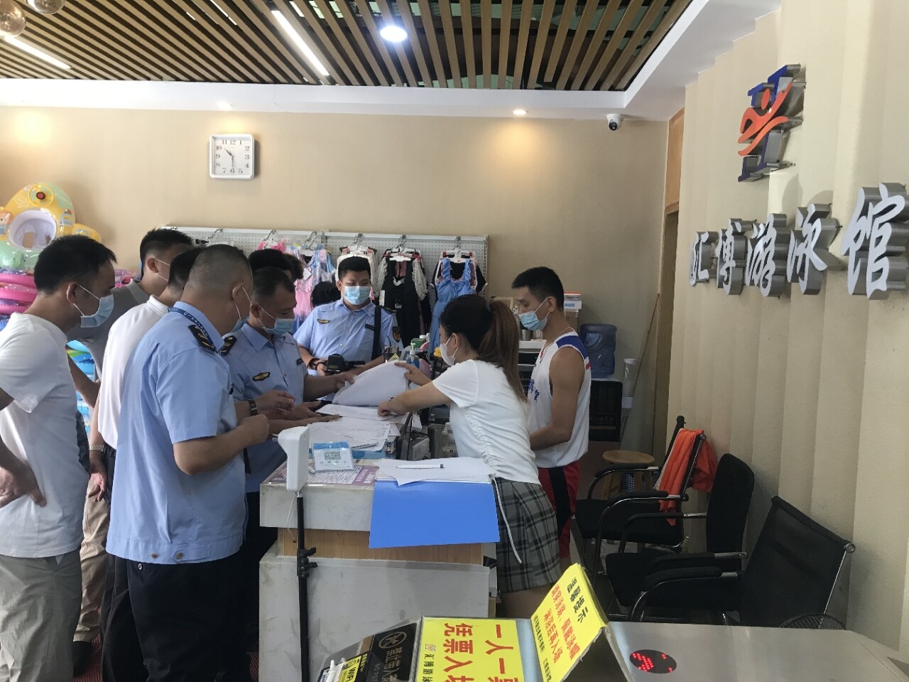 6月20日,市场管理股工作人员前往罗阳街道,对4家游泳池开展文旅体市场经营秩序检查。