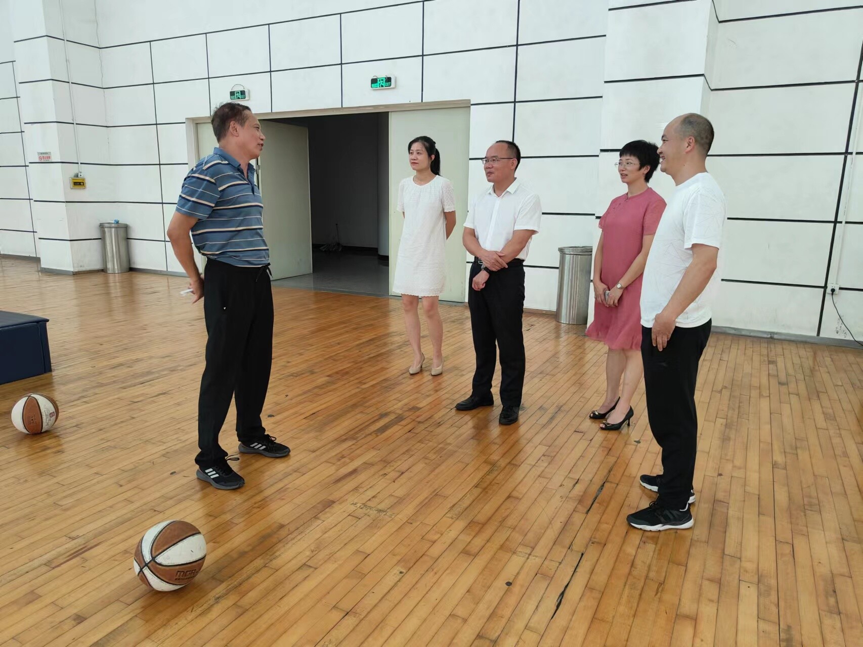 7月20日下午,县委常委、宣传部部长赵碧波、中文博彩平台文化广电旅游体育局局长陈雪花、党组成员郑浩等领导会同广州体育学院专家组,视察中文博彩平台业余体育学校篮球训练场地(中文博彩平台体育中心篮球馆副馆)。