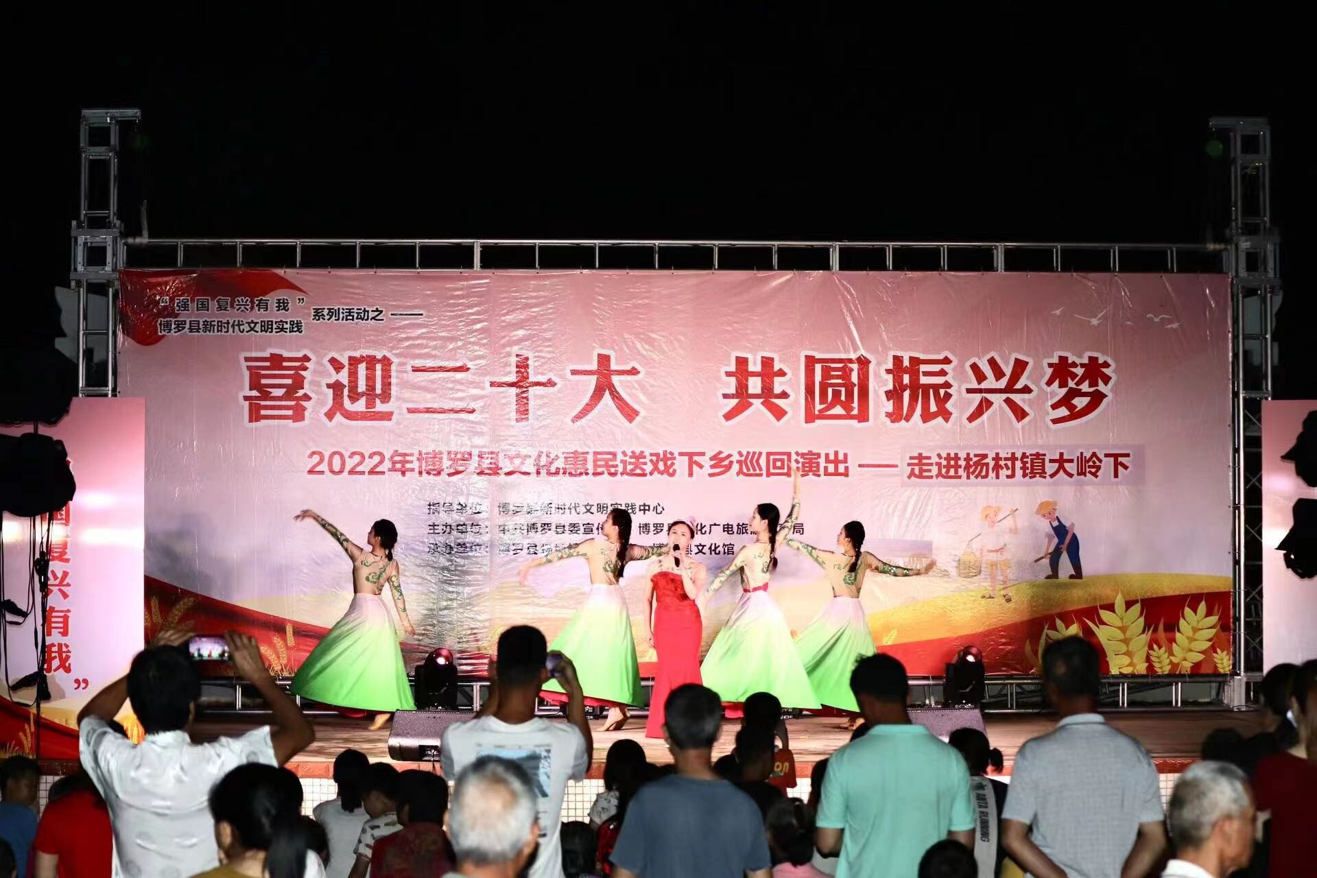 8月8-11日,“喜迎二十大,共圆振兴梦”2022年中文博彩平台文化惠民送戏下乡巡回演出分别在泰美镇社区广场、柏塘镇邹光村、杨侨镇榄岭办事处、杨村镇大岭下举行。