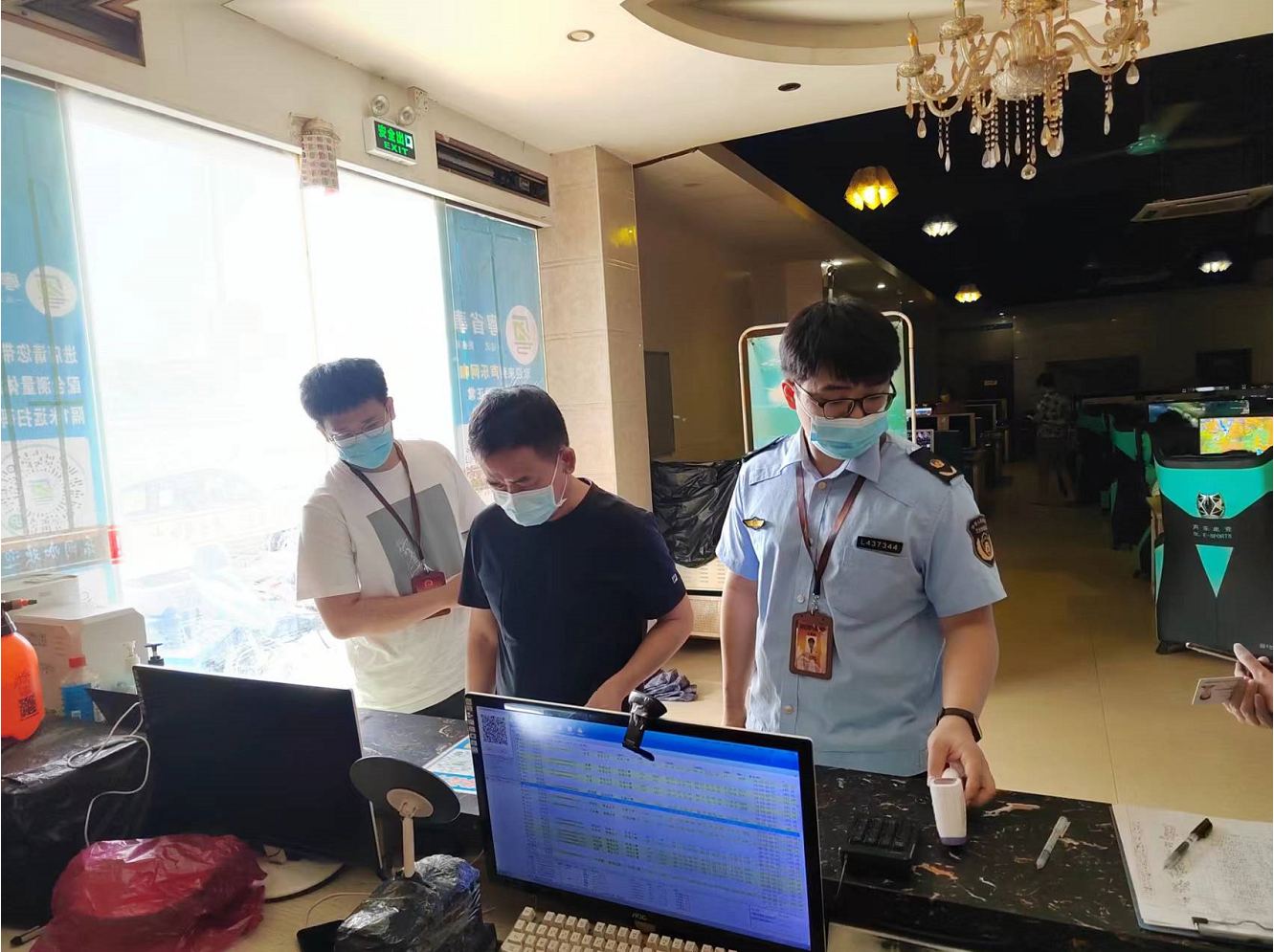 8月8日,执法大队组织执法人员前往罗阳街道,开展网吧专项整治及安全生产、创文迎检工作检查。巡查中,执法人员发现部分网吧存在防疫及消防台账不完善、个别上网人员吸烟、不佩戴口罩现象。执法人员现场督促场所负责人立即整改,严格按照相关规定落实好疫情防控及创文迎检工作。