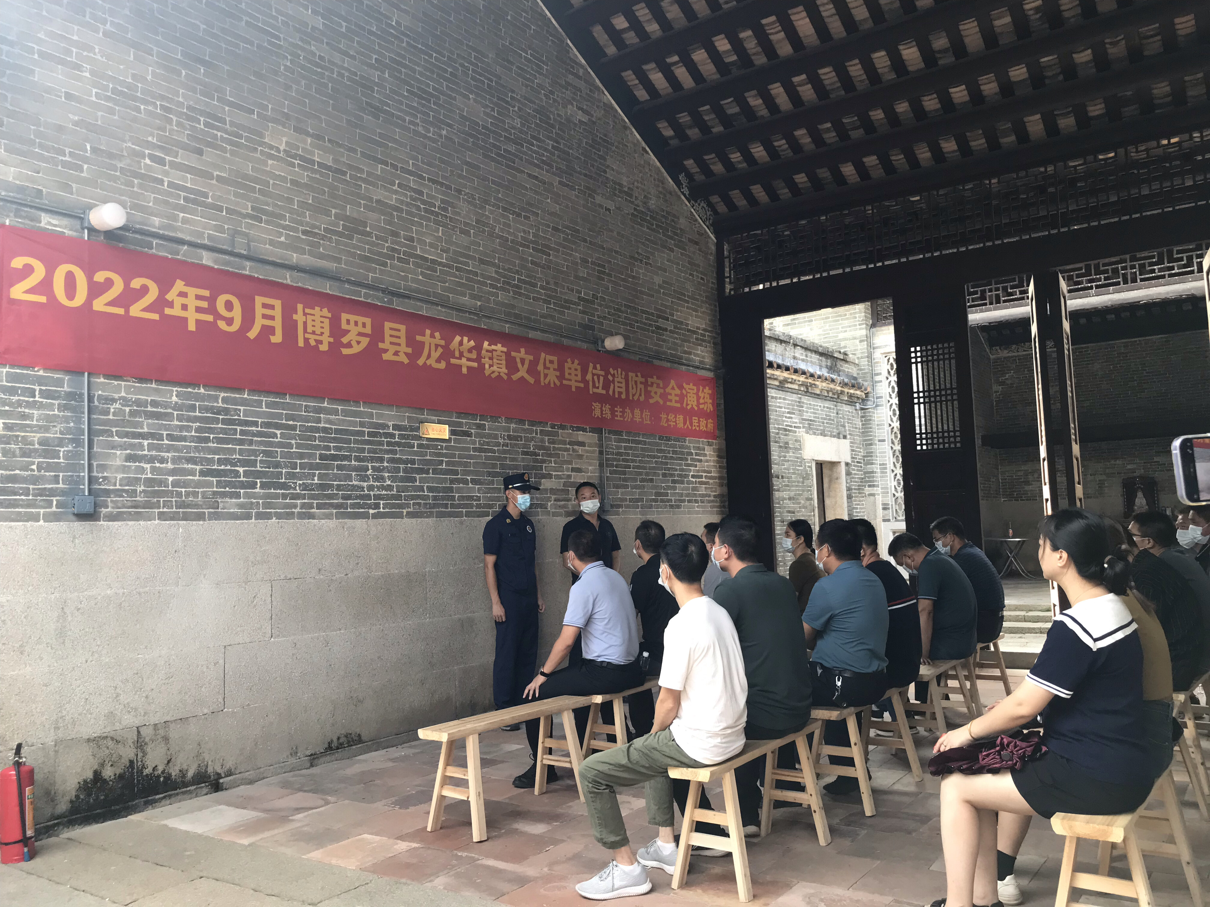 9月16日,文化遗产保护和资源开发股联合龙华镇政府在旭日村陈百万建筑群开展文物消防安全应急演练。消防人员在演练现场详细讲解了文物建筑在面对火情时的灭火原理和方法、灭火器使用注意事项及操作方法等基本知识,并开展人员逃生及疏散演练。