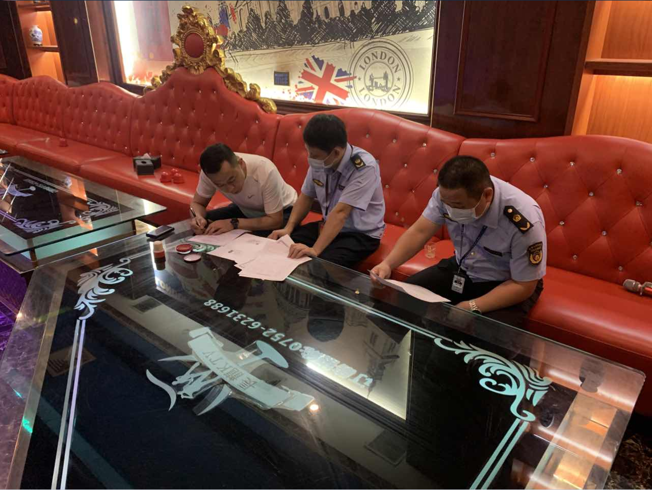 11月15日,执法大队前往罗阳街道,开展校园周边文化娱乐场所经营秩序整治,取缔1家无证KTV。