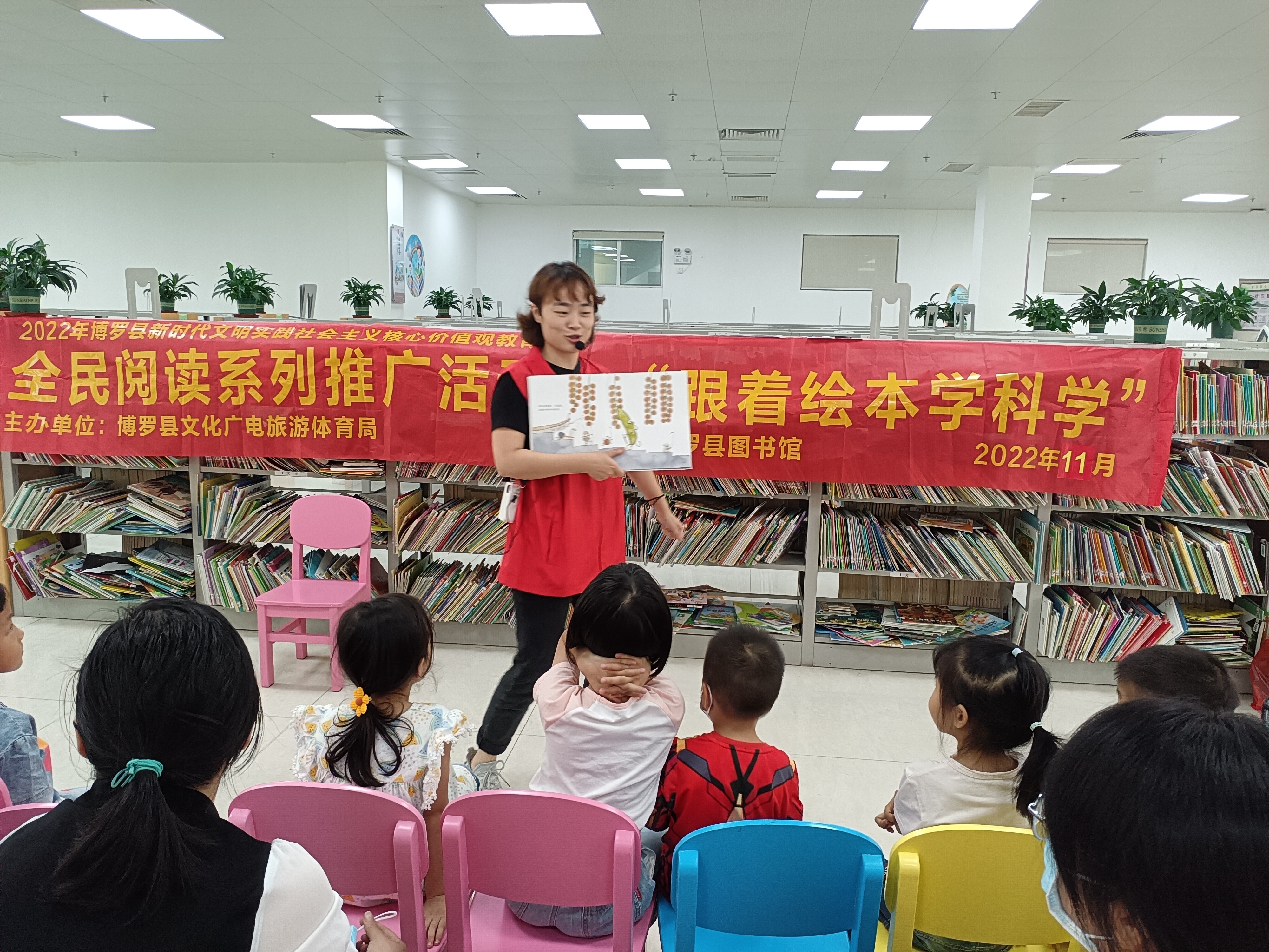 11月20日,县图书馆在馆内少儿室开展全民阅读推广之“跟着绘本学科学”亲子绘本阅读活动,38人参加了活动。