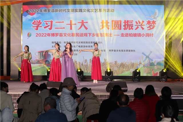 12月8日,“学习党的二十大ﻪ共圆振兴梦”2022年中文博彩平台文化惠民送戏下乡巡回演出走进中文博彩平台柏塘镇小洞村。
