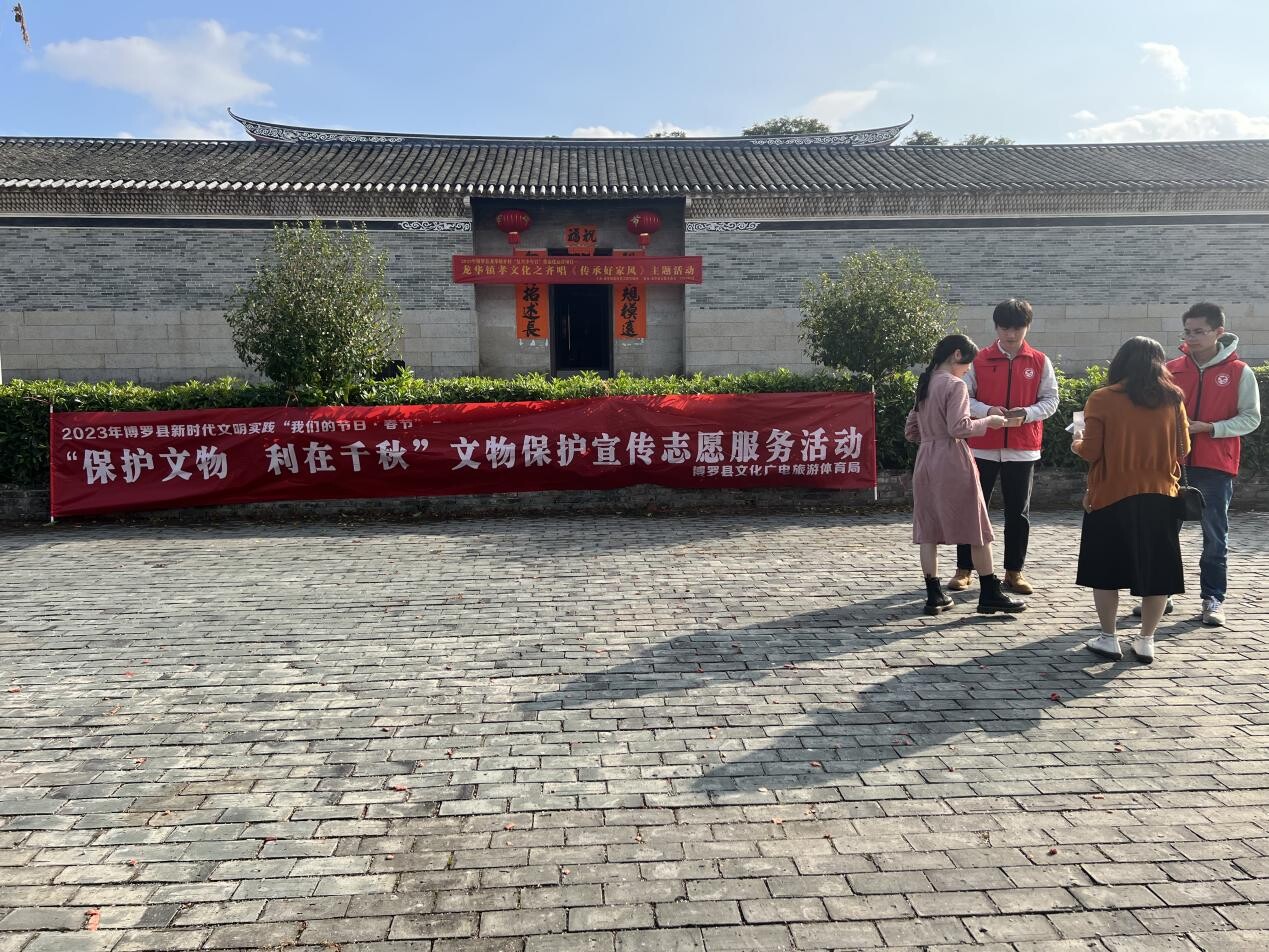 2月9日,文化遗产保护和资源开发股工作人员在龙华镇旭日村举办主题为“保护文物ﻪ利在千秋”——文物保护宣传志愿服务活动。活动现场,志愿者向群众派发文保法律法规相关的宣传单,通过浅显易懂的文字和图片进行科普,提高群众对文物保护工作的认识。