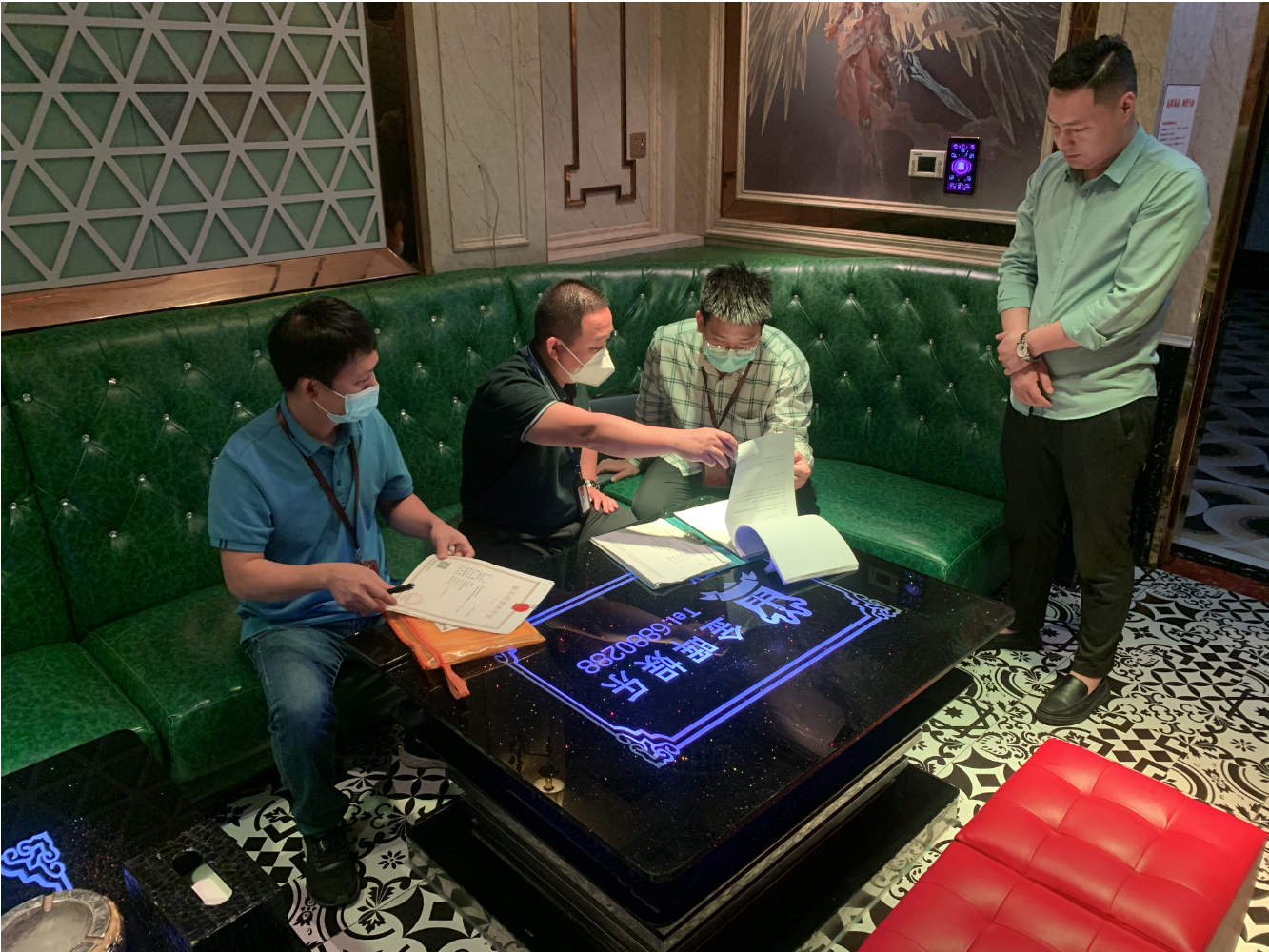 3月23日,市场管理股工作人员前往园洲镇,对2家KTV申请《娱乐经营许可证》延续进行场地审核。