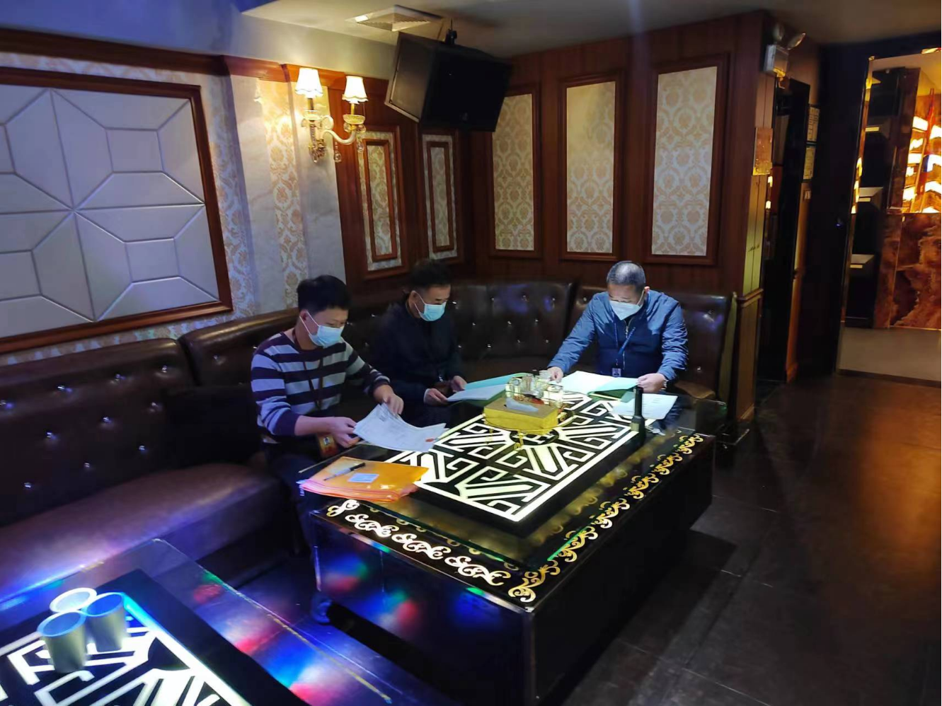 4月4日,市场管理股工作人员前往柏塘镇、杨村镇对3家KTV申请延续进行场地审核。