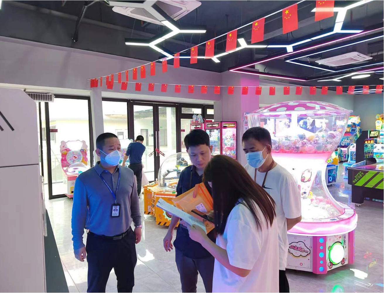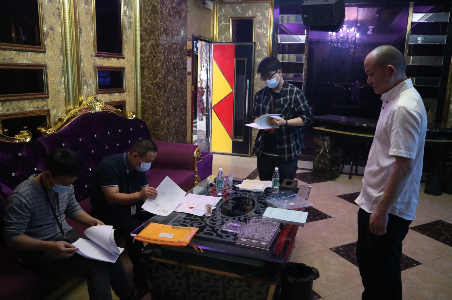4月6日,市场管理股工作人员前往园洲镇、石湾镇对1家游艺场所申请新设立、3家KTV申请延续进行场地审核。