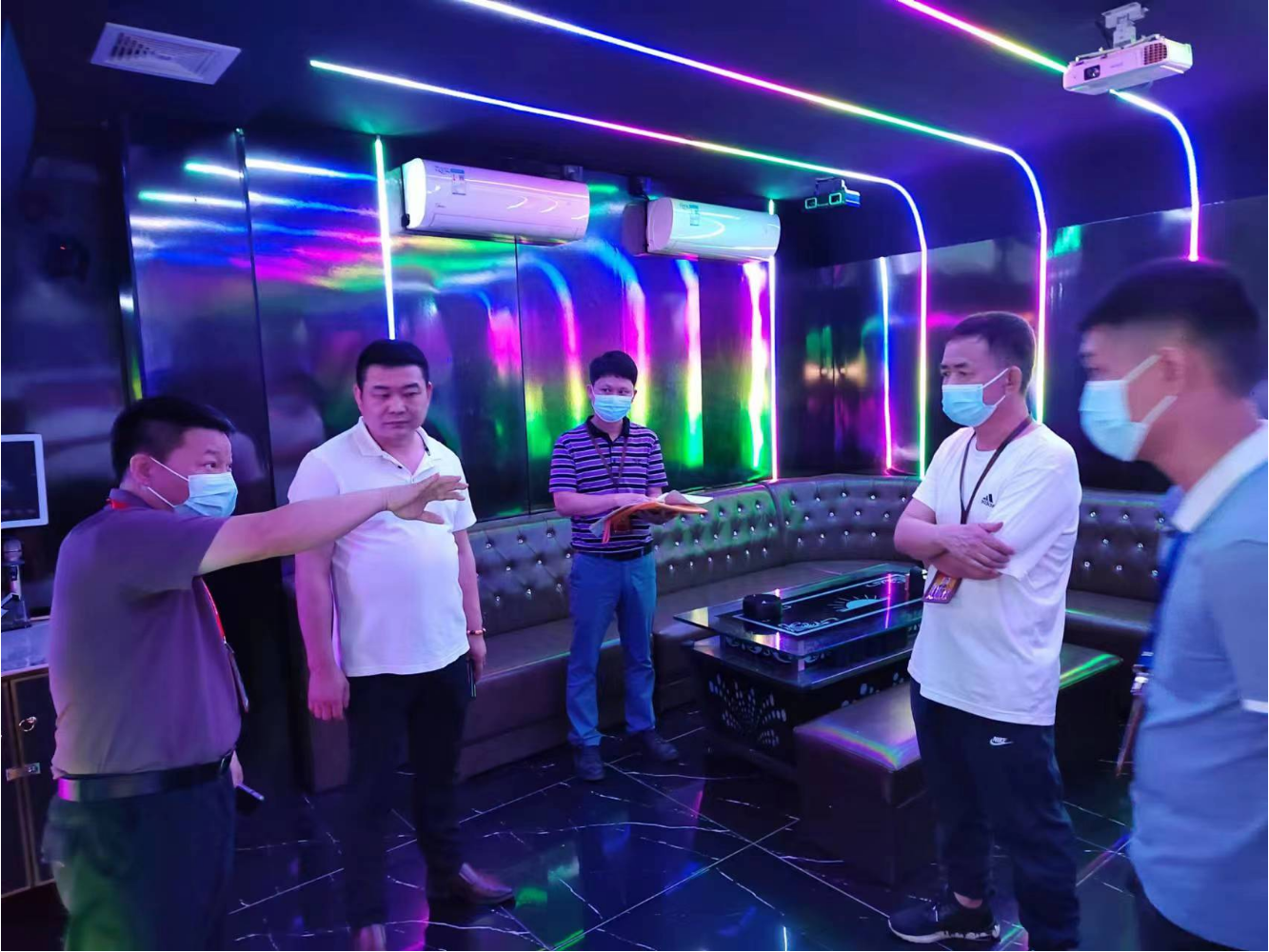 5月5日,市场管理股工作人员前往石湾镇,对2家KTV场所申请新设立进行场地审核。