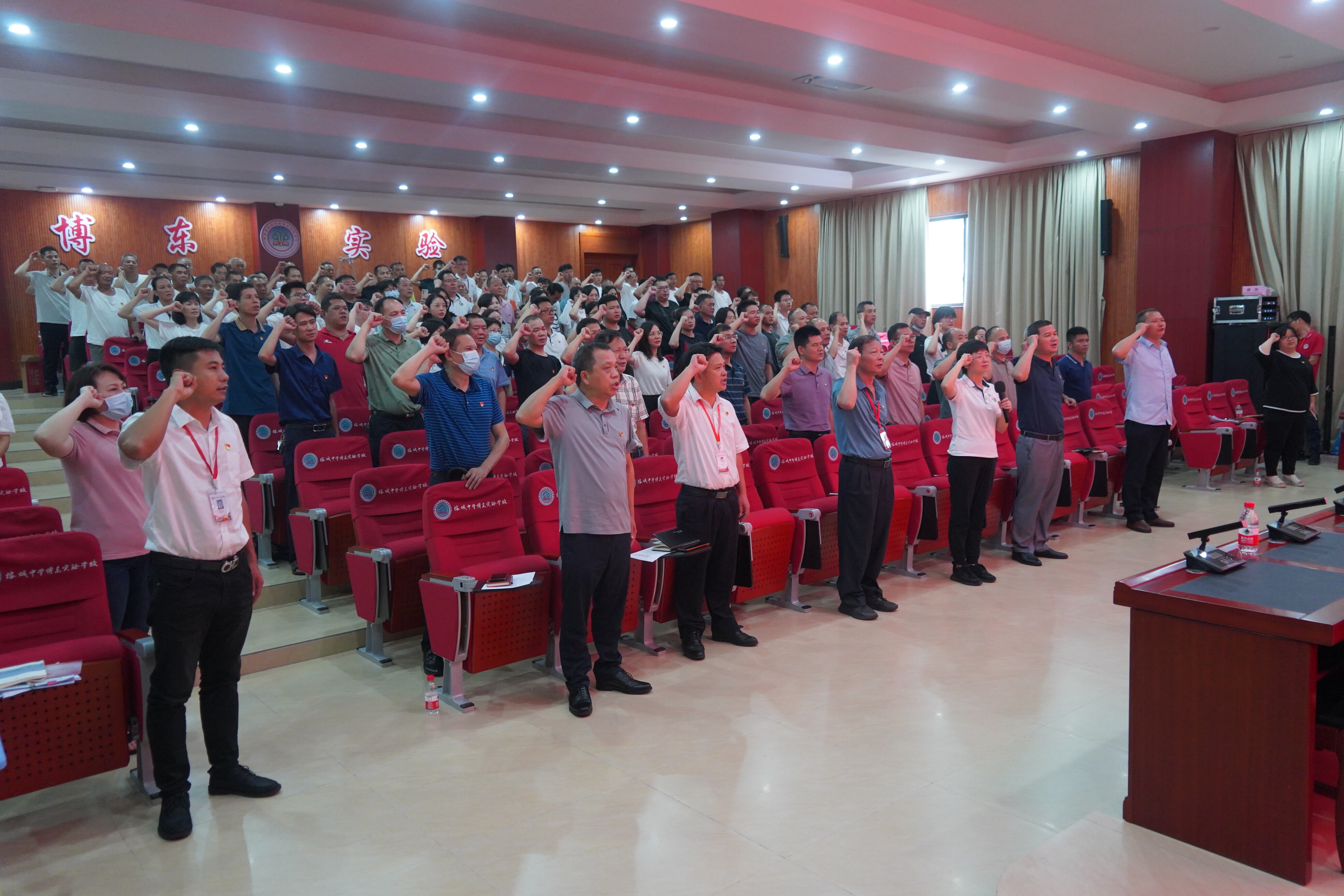 授课结束后,陈雪花作为领誓人,带领全体党员干部高举右拳,以高昂有力的宣誓声一起重温入党誓词。鞭策全体党员干部,牢记初心,坚守使命,不断前行。