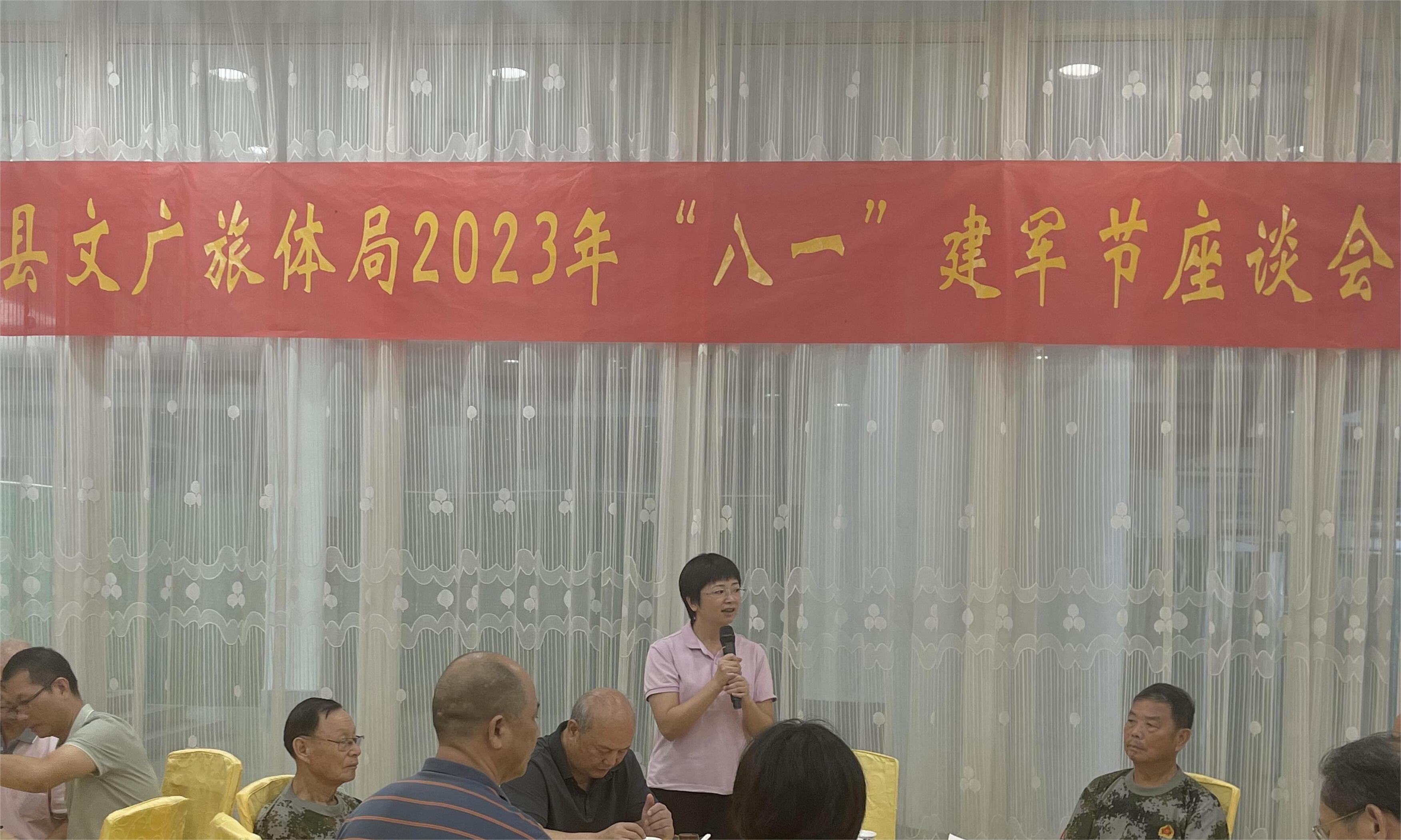 8月1日,县文广旅体局召开2023年“八一”建军节座谈会,局领导班子成员、全局退役军人和各部门负责人共70余人欢聚一堂,共祝中国人民解放军建军96周年。