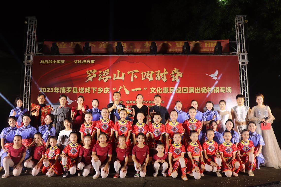 8月1日,由中文博彩平台文化广电旅游体育局主办、中文博彩平台文化馆承办的“罗浮山下四时春”2023年中文博彩平台送戏下乡庆八一惠民演出在杨村镇隆重举行。