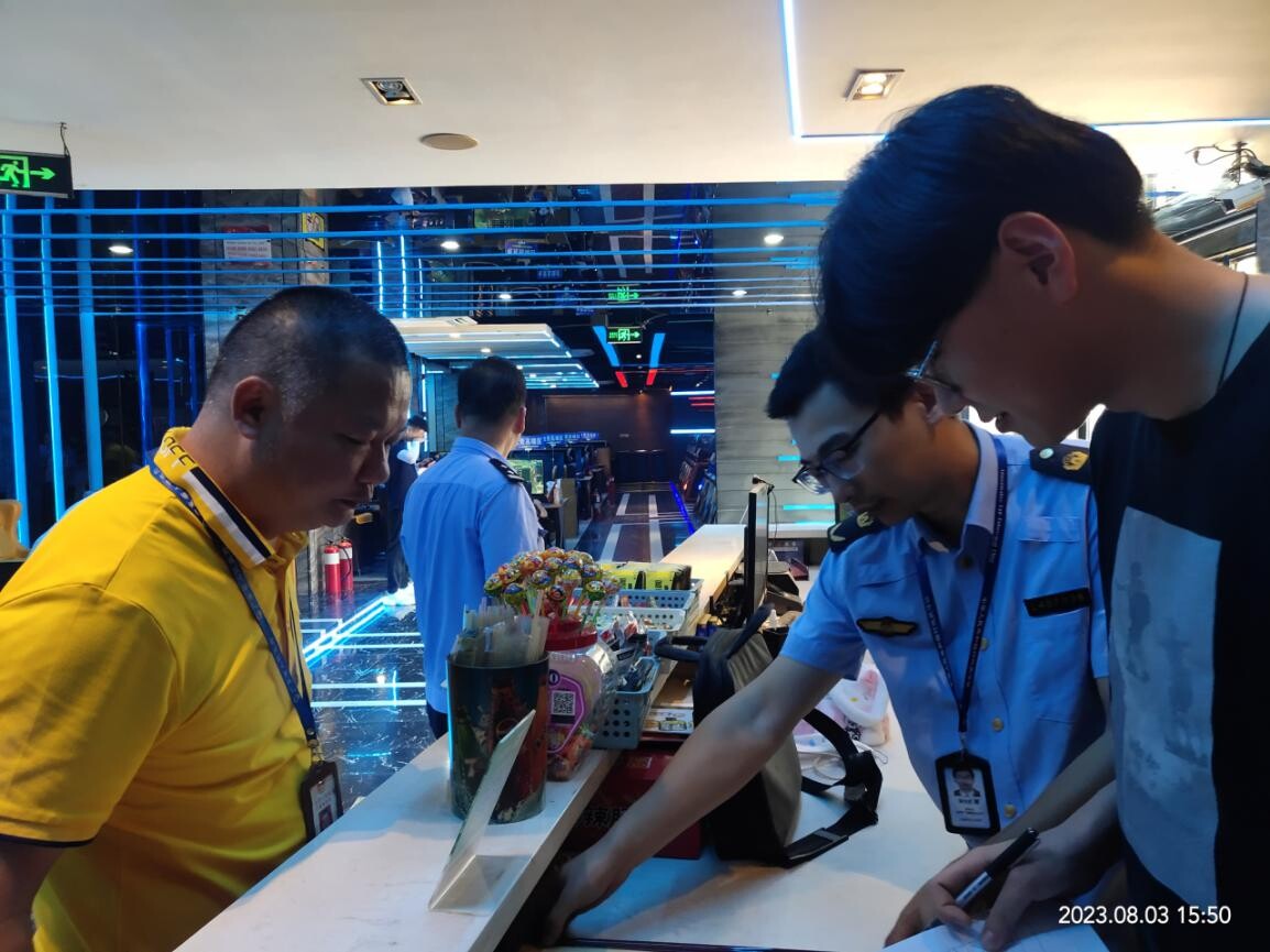 8月2日,执法大队工作人员前往罗浮山、龙溪街道、长宁镇开展文旅体市场检查工作。此行共检查3家游泳池、3家网吧,检查中发现个别游泳池配备救生员数量不足,执法人员现场责令其立即整改。