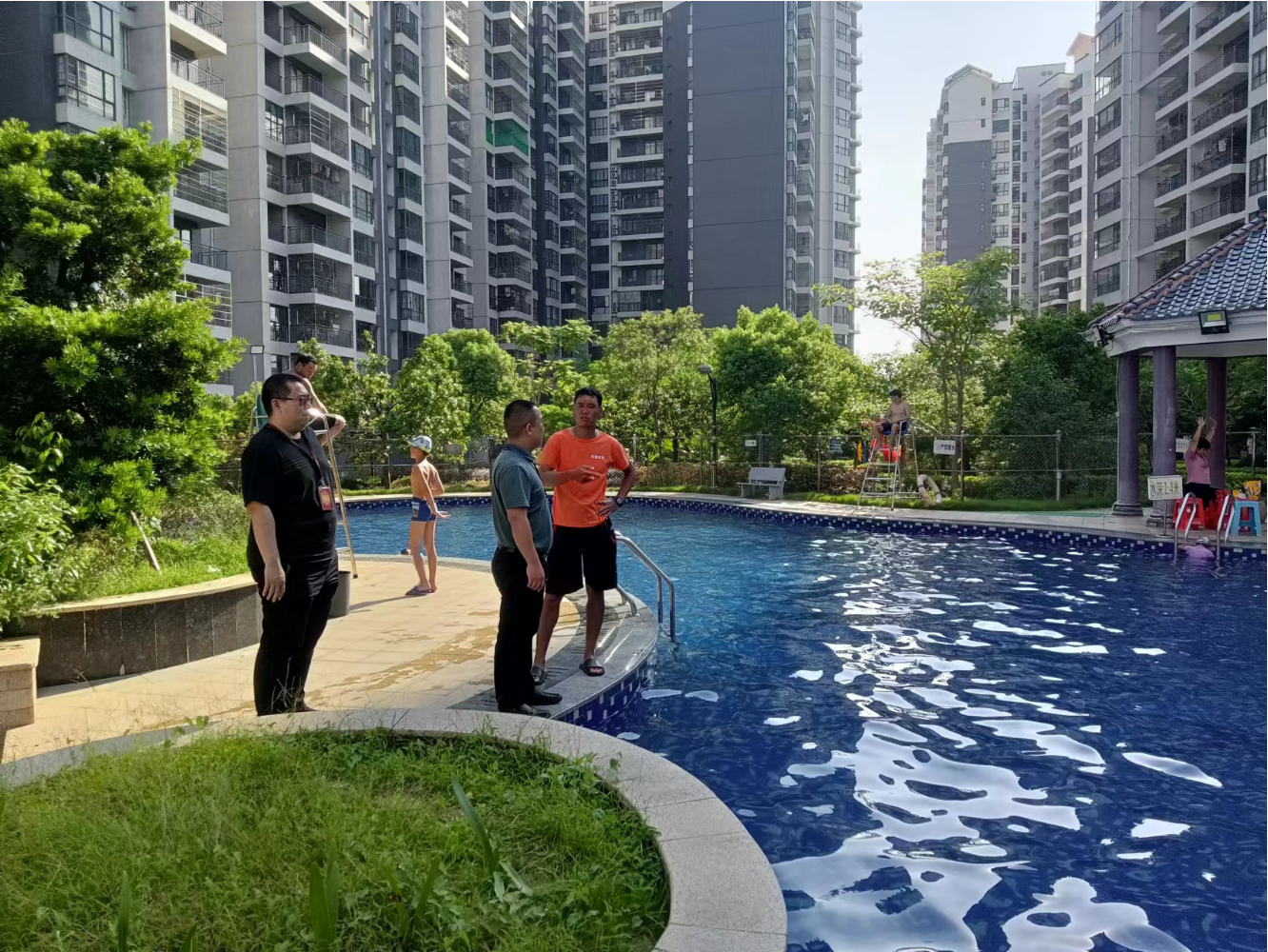 8月3日,市场管理股工作人员前往长宁镇,对1家游泳池申请延续进行场地审核。