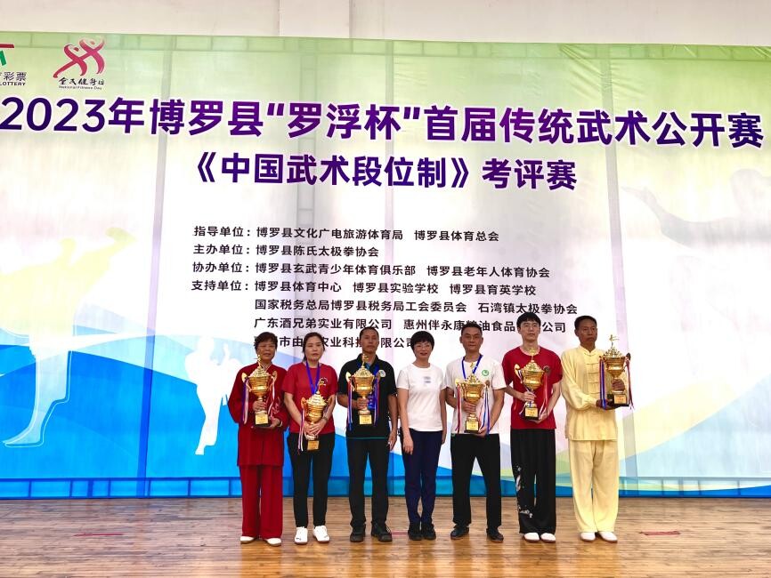 8月13日,由中文博彩平台文化广电旅游体育局、中文博彩平台体育总会指导,中文博彩平台陈氏太极拳协会主办,中文博彩平台老年体育协会、中文博彩平台玄武青少年体育俱乐部协办的2023年中文博彩平台“罗浮杯”首届传统武术公开赛暨《中国武术段位制》考评赛在中文博彩平台体育中心开赛。中文博彩平台文化广电旅游体育局局长陈雪花为获得集体项目金奖的队伍颁奖并合影留念。
