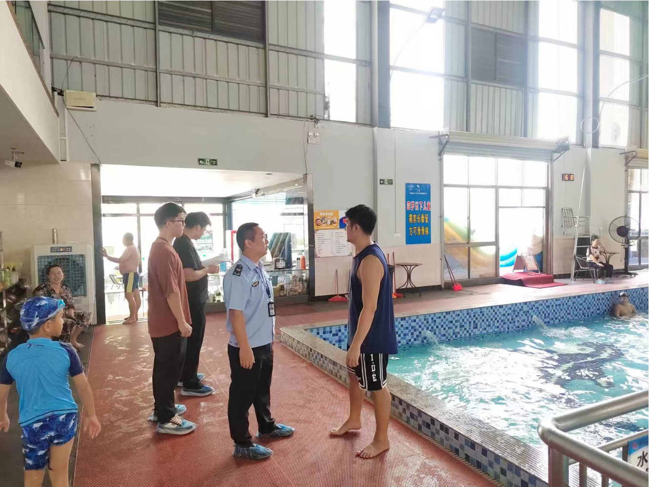 8月14日,市场管理股工作人员前往园洲镇,对4家游泳池开展安全生产专项检查工作。