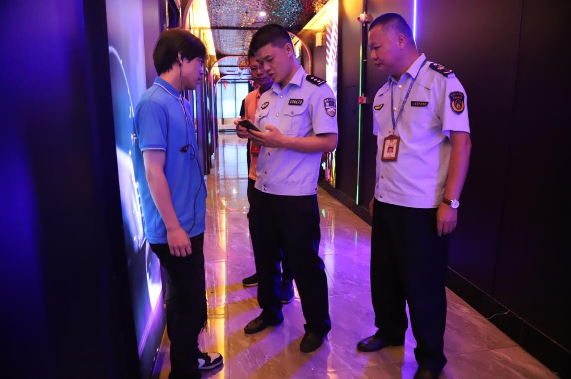 当天晚上,我局执法人员还联合县公安局治安大队工作人员继续在当地开展“双随机、一公开”检查工作,共检查3家娱乐场所。检查发现个别娱乐场所未建立从业人员名簿和营业日志,执法人员对其发出责令改正通知书并要求立即整改。