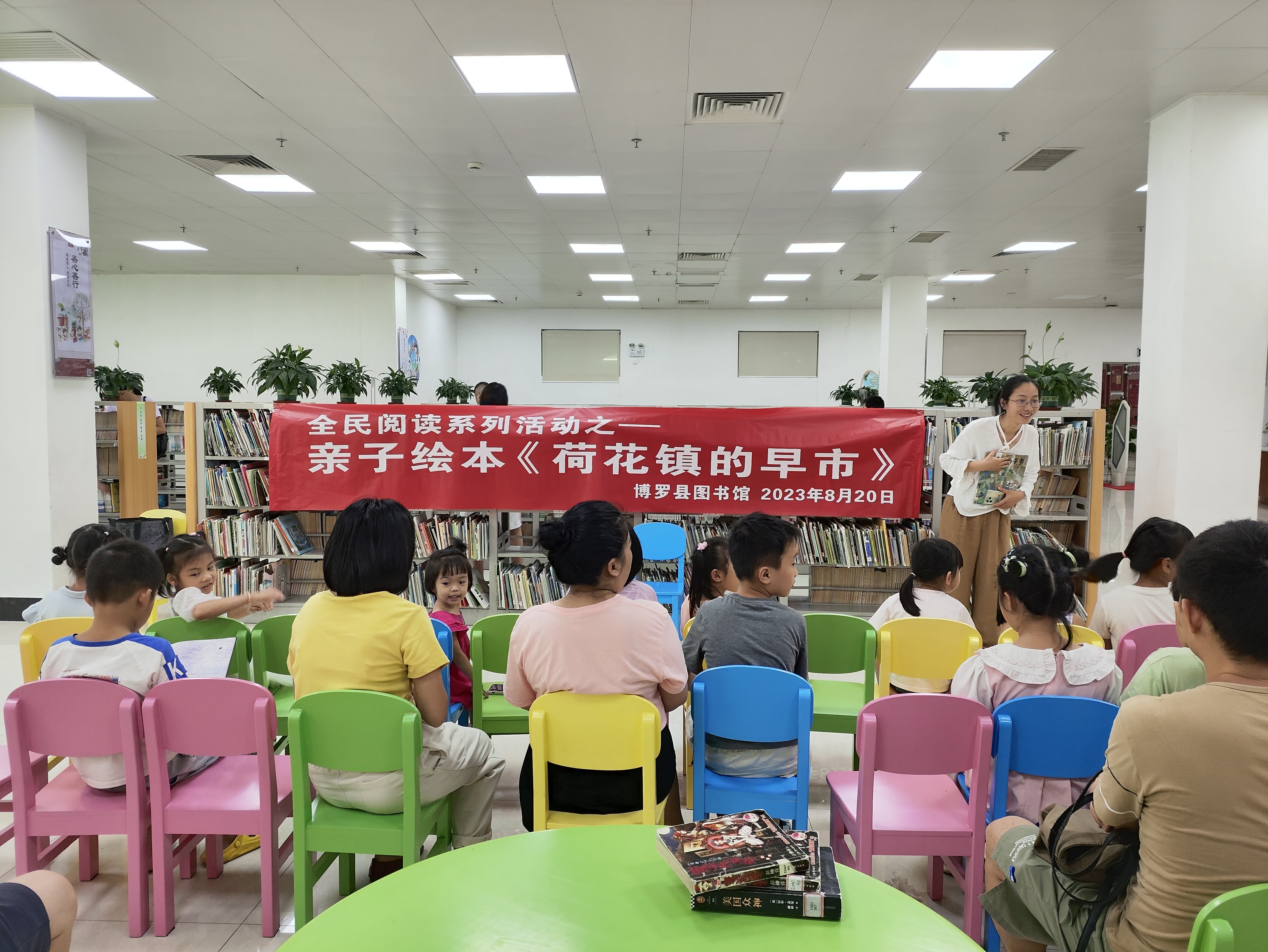 8月20日,中文博彩平台图书馆在一楼少儿阅览室开展全民阅读系列活动之亲子绘本《荷花镇的早市》。