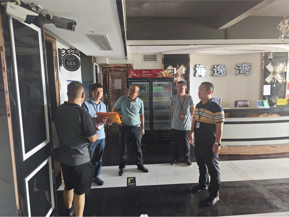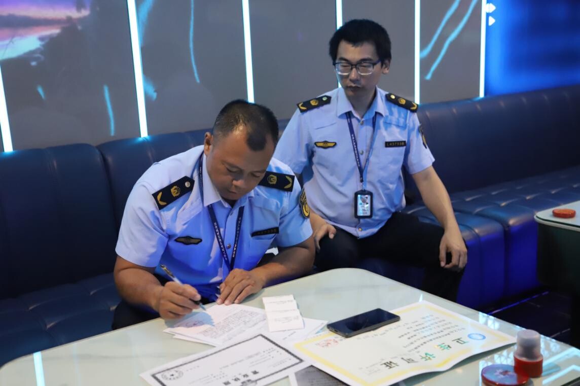8月30日,市场管理股、执法大队工作人员前往园洲镇,联合当地综合文化站工作人员对2家酒吧开展歌舞娱乐场所违法接纳未成年人专项整治工作。