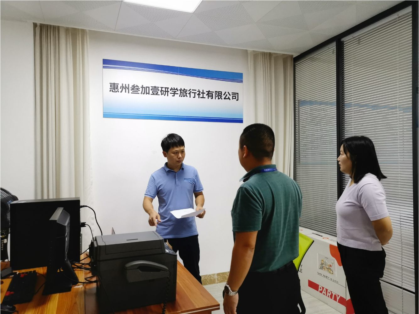 8月28日,我局市场管理股工作人员受市文广旅体局委托,前往罗阳街道,对1家企业申请设立旅行社进行场地勘察。