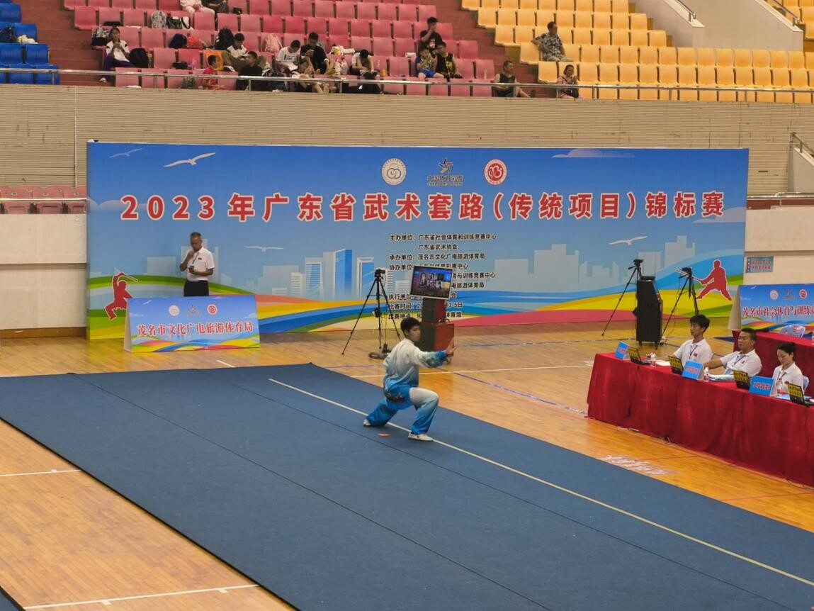 2023年10月3-5日,由广东省社会体育和竞赛训练中心、广东省武术协会主办,茂名市文化广电旅游体育局承办的2023年广东省武术套路(传统项目)锦标赛在茂名市化州康景体育馆隆重举行。共有来自全省各地170支队伍的1200多名运动员参赛,呈现了一场精彩绝伦的“武林大会”。