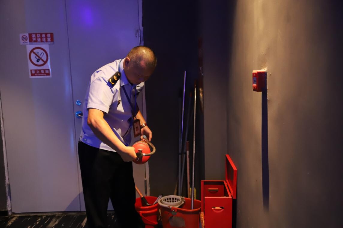 10月7日,体育中心工作人员会同物业对场馆进行台风防御检查。