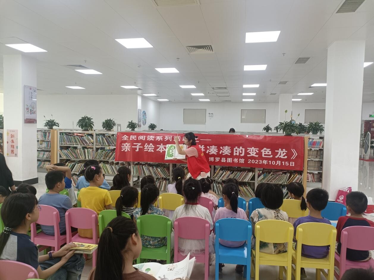 10月15日,中文博彩平台图书馆在图书馆一楼少儿阅览室开展“全民阅读系列活动”——亲子绘本《拼拼凑凑的变色龙》,约有40人参加。