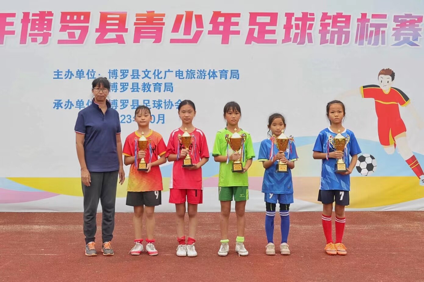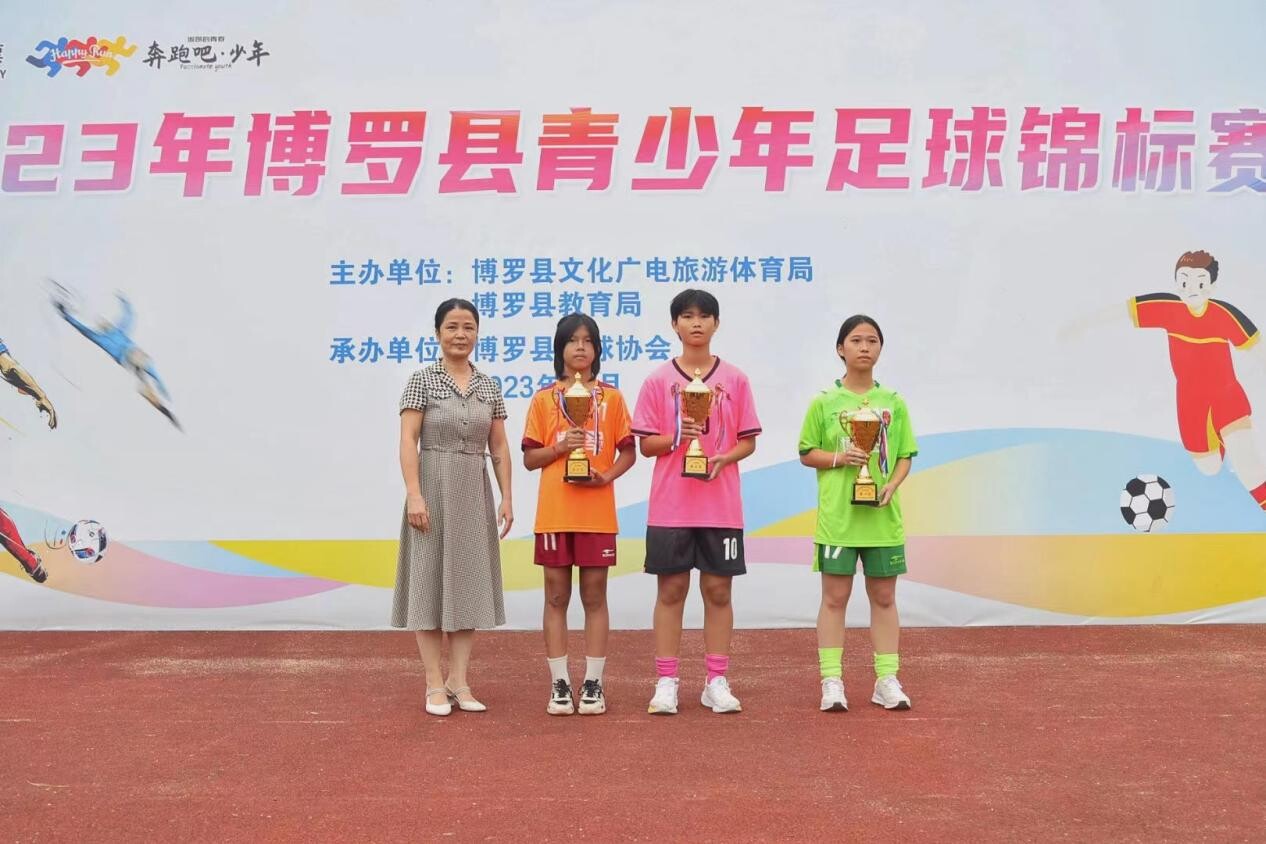 (县文广旅体局体育股股长黄绮敏为获奖队员颁奖)