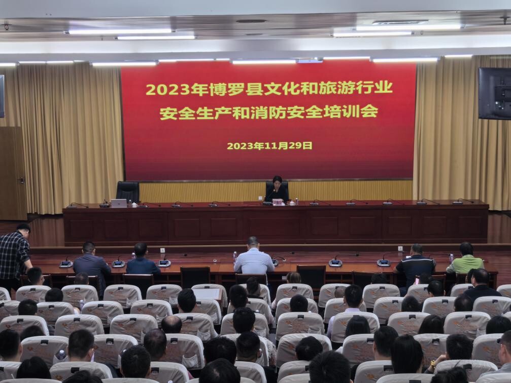 为深入贯彻习近平总书记关于安全生产工作重要指示批示精神,进一步提升全县文旅行业安全生产和消防安全工作水平,11月是“消防宣传月”,以此为契机,全面提升全县文化、旅游行业从业人员安全生产和消防安全意识和能力,11月29日下午,县文化广电旅游体育局在县文化中心多功能会议室举行2023年全县文化和旅游行业安全生产和消防安全工作培训会。全县娱乐场所(歌舞、游艺)、网吧、有营业性演出的酒吧、剧本娱乐经营场所、纳入登记的旅游民宿、A级景区、星级饭店、旅行社等代表约200余人参加了培训。会议由县文广旅体局副局长卢瀚春主持。