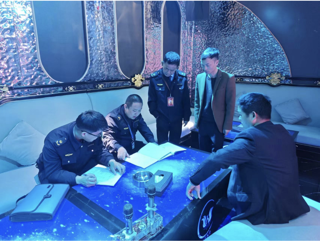 12月27日,市场管理股工作人员前往石湾镇对3家KTV开展歌舞娱乐场所经营秩序检查工作。