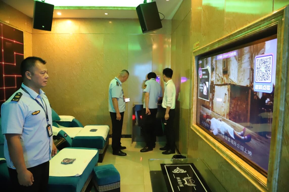 4月9日,执法大队前往罗阳街道开展文旅市场检查及处理一宗投诉案件,此行检查了2家KTV,检查发现其中1家KTV擅自改建、扩建营业场所,执法人员现场拆除改建、扩建包厢内的点歌系统设备。