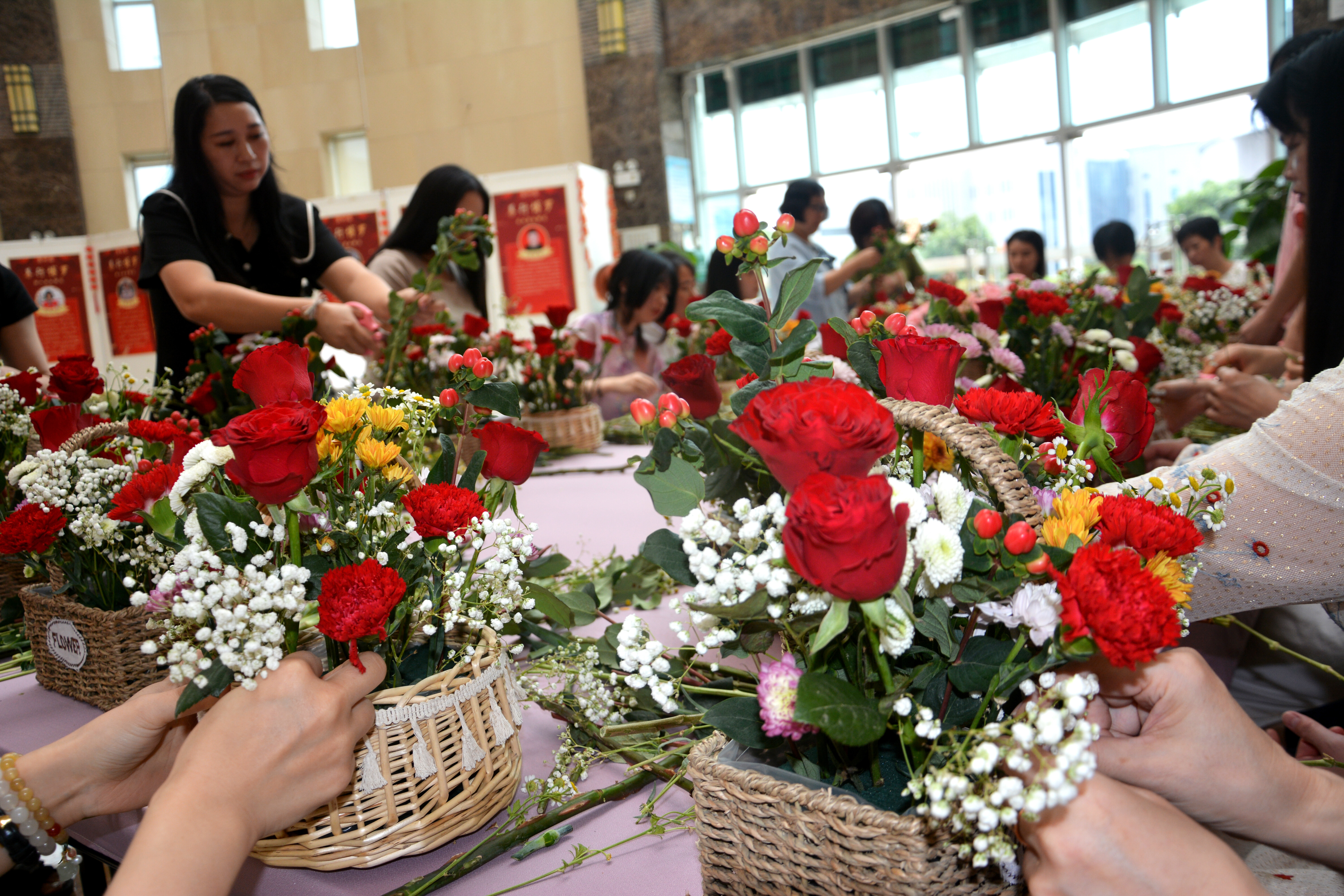 近期,县文化馆在馆内开展“花点时间ﻪ让爱绽放”母亲节插花活动,向母亲节献礼,传递节日祝福,活动现场吸引了近百人参与。