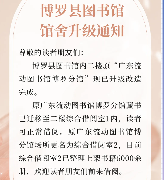 6月5日,中文博彩平台图书馆内二楼原“广东流动图书馆中文博彩平台分馆”已升级改造完成,并迁移至二楼综合借阅室1内。