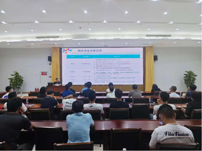 陈望讲师针对高危险性体育项目(游泳池)相关政策、泳池规模的界定、场所安全设施配置等内容进行了现场授课,进一步提高游泳场所经营主体的安全意识、责任意识,做到安全生产教育全覆盖,切实保障广大群众参与游泳活动的人身安全。