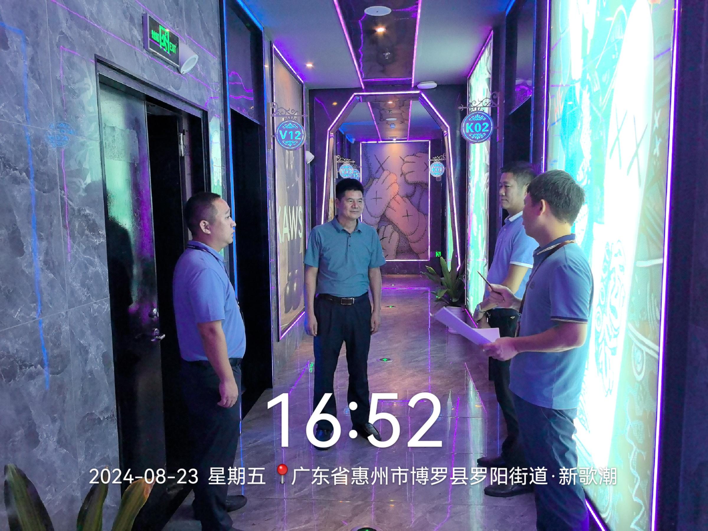 8月20日,市场管理股工作人员前往长宁镇、福田镇开展歌舞娱乐场所(KTV)、网吧日常巡查工作,共检查KTV6家,网吧4家,发现问题隐患16处,工作人员均已现场要求相关场所限期整改。