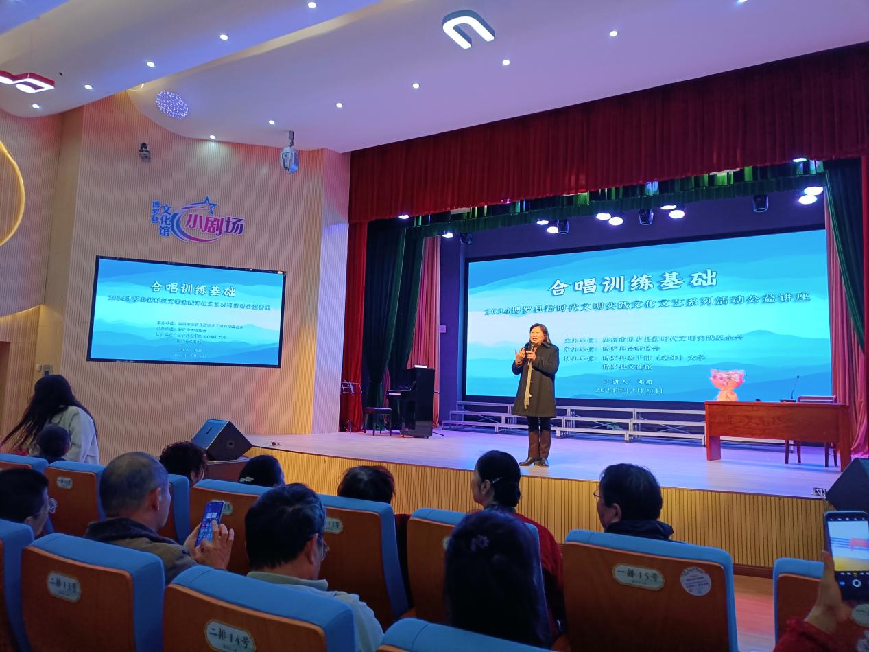 12月21日,2024中文博彩平台新时代文明实践文化文艺系列活动公益讲座——合唱训练基础在中文博彩平台文化馆小剧场举行。