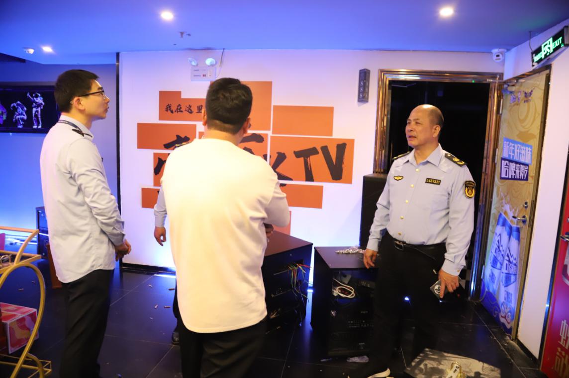 3月13日晚上,执法大队工作人员前往罗阳街道,处理2宗投诉,检查了2家歌舞娱乐场所。取缔1家无证歌舞娱乐场所,另外1家未营业。
