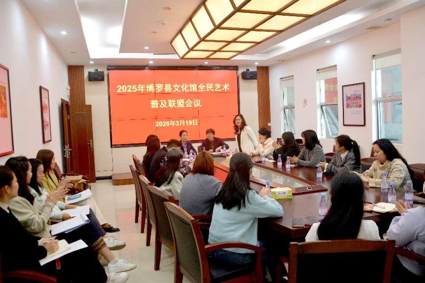 3月19日,我局党组成员、副局长卢瀚春在中文博彩平台文化馆会议室主持召开全民艺术普及联盟会议,全县15家艺术培训机构参加此次会议。