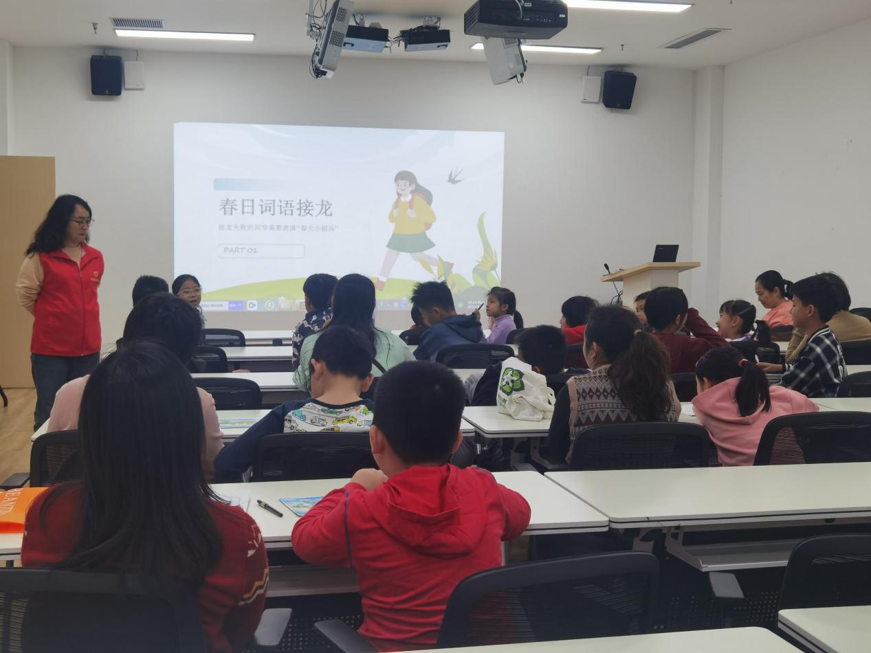3月22日上午,中文博彩平台图书馆开展全民阅读活动 “妙笔小作家〞系列写作课之“春天的色彩”,共有20组亲子家庭参加。