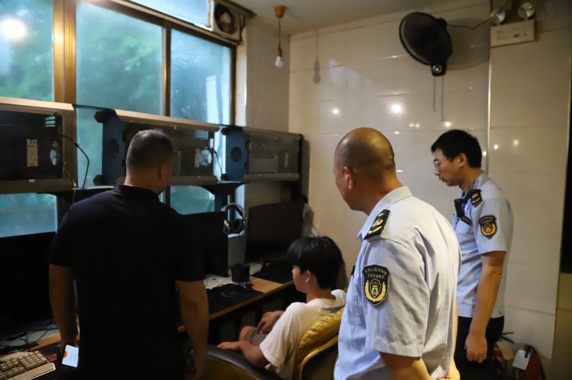 721日上午,执法大队工作人员前往罗阳街道,对1家接纳未成年人的网吧进行处理。