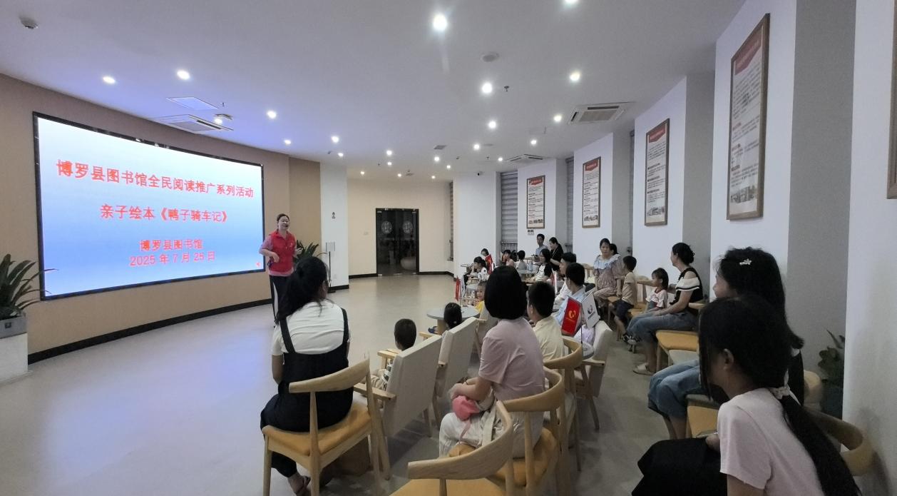 725日晚,中文博彩平台图书馆联合中文博彩平台党群服务中心,开展“书香观影 阅见美好”主题观影第四期《建军大业》、亲子绘本《鸭子骑车记》、“惠享阅读家”公益故事分享会活动。此次活动共三场有80组亲子家庭参与。