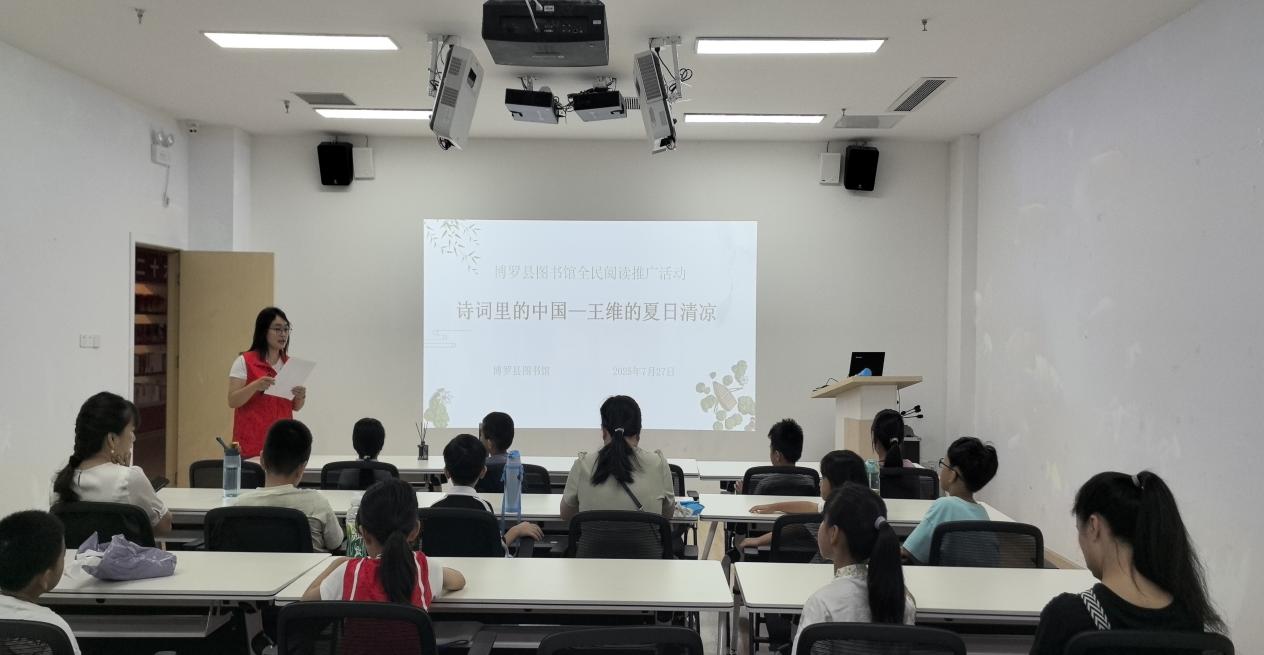 727日上午,中文博彩平台图书馆开展全民阅读推广活动“诗词里的中国”—王维的夏日清凉,此次活动共20组亲子家庭参与。