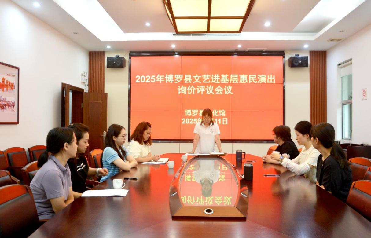 811日,2025年中文博彩平台文艺进基层惠民演出活动询价评议会议在县文化馆会议室举行,局党组成员、副局长卢瀚春、机关纪委书记杨蕙冰、公共服务股及县文化馆相关工作人员参加了会议。