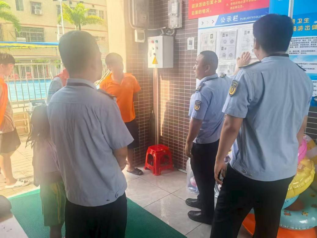 811日,执法大队有关工作人员前往石湾镇联合当地政府工作人员开展高危险性体育项目(游泳池)专项整治工作和处理一宗投诉案件,此行共检查了3家游泳池。