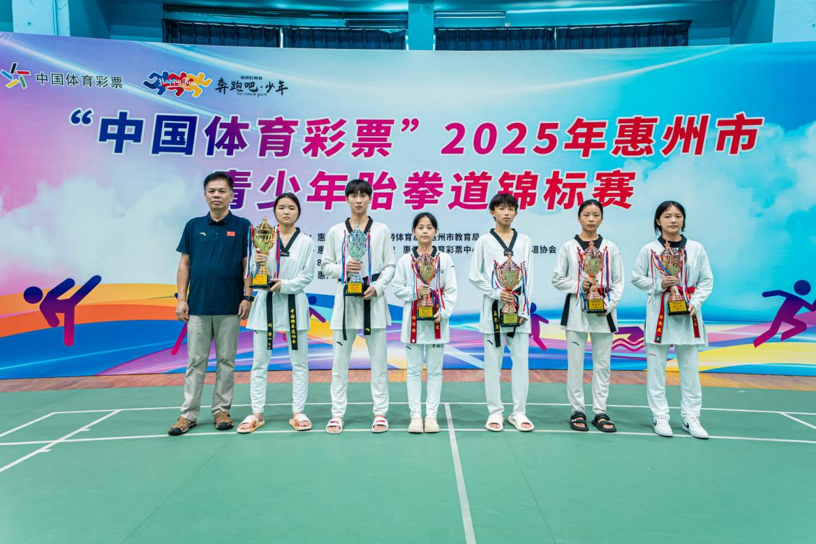 814日至16奔跑吧·少年中国体育彩票2025年惠州市青少年跆拳道锦标赛在惠州市体育运动学校综合馆举行中文博彩平台代表队共55名队员参赛,经过3天激烈角逐,中文博彩平台代表队最终获得团体第三名!