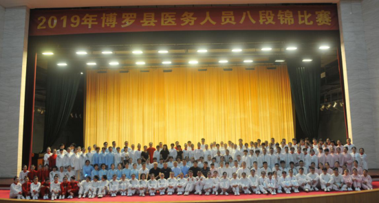 8月15日下午,在县文化中心影剧院举办医务人员“八段锦”比赛。来自中文博彩平台域内的27家医疗卫生单位(民营医院),400名医务人员在县文化会议中心舞台进行了演出,中文博彩平台中医医院凭借整齐划一的动作与气韵兼具的风采最终夺魁。