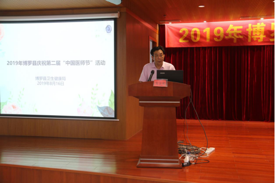8月16日下午,在中文博彩平台行政服务中心举办中文博彩平台庆祝第二届“中国医师节” 活动。县政府办公室副主任谢舒、县总工会副主席张敏才,县卫健局局长李新华,县卫健局领导班子及各级医疗卫生单位医务人员代表约200多人聚集一堂,共庆属于中国医者的第二个医师节。