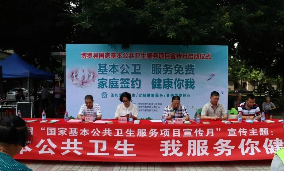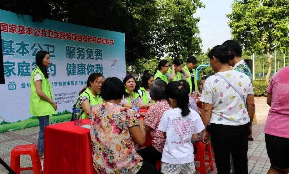 7月26日上午,以“基本公共卫生,我服务你健康”为主题的中文博彩平台2017年国家基本公共卫生服务项目宣传月启动仪式在县城文化广场隆重举行。宣传活动由中文博彩平台卫生和计划生育局主办,罗阳镇政府协办,罗阳镇卫生院承办。县卫生和计划生育局副局长伍益忠,罗阳镇人民政府副镇长温志云,县疾病预防控制中心副主任邓寿平,罗阳镇卫生院院长李雪开出席活动。县直各公共卫生机构工作人员和专家、罗阳镇卫生院公卫服务队和村卫生站负责人及群众共200余人。